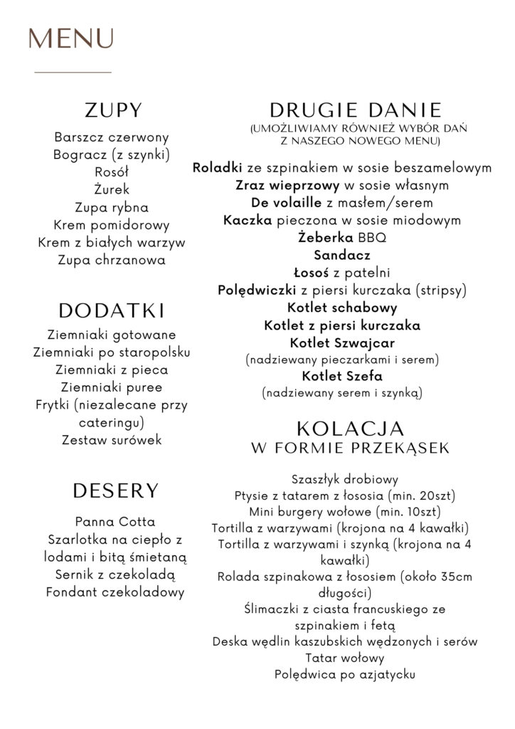Poniżej przedstawimy Państwu menu okolicznościowe wraz z cenami.